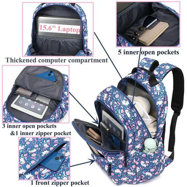 backpacks ages 8-12: cute and chic style; little girls backpack, great size backpacks for Laptop, college school backpack for girls 10-12, Structure: 1 main compartment, 1 laptop compartment, 1 iPad compartment, 5 inner open pockets, 1 back pocket, 1 front zipper pocket, 2 side pockets;