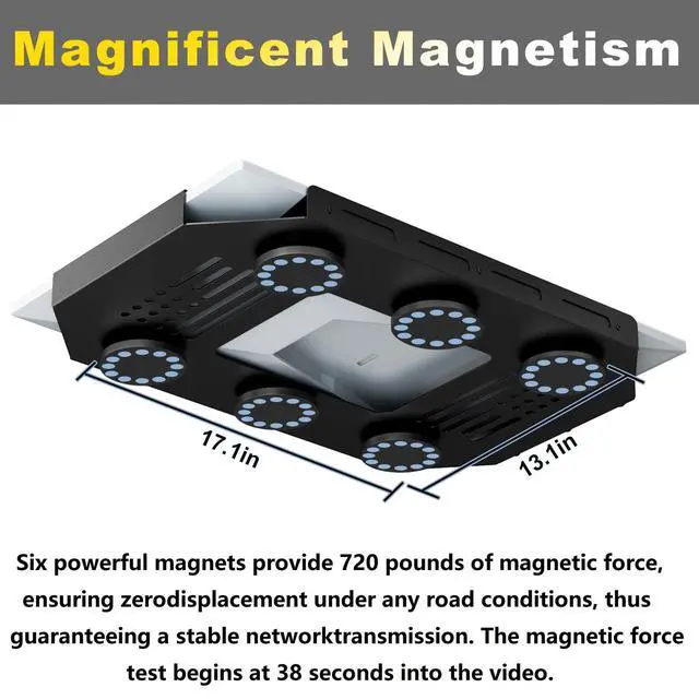 BFDQWR Gen3 Magnetic Mount Ready to use out of the box - no assembly required, no complicated assembly process, eachproduct is calibrated 1 to 1 before shipping to ensure premium quality! Ready to use right out of the box-no complicated assembly required. Each productundergoes 1:1 calibration before shipping to ensure premium quality! ^^ Ready to use right out ofthe box no assemblyrequired, savingyou time and effort, Wehave pre-installed 6 magnets, and thebracket is precision-molded at everyangle toensure a 100%perfect fit and completelyeliminate wobbling. ^^ The newly upgraded model features 6 large, powerful magnets with a diameter of88mm, delivering a magnetic force of 720 pounds to ensure secure attachment to yourvehicle's roof, preventing property damage from detachment.