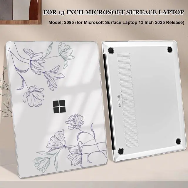 Case: Two-piece snap-on design, easy to install and take off. Precise cutouts and allows full access to all ports. The rubber anti-slip pads on the bottom add stability. Fully vented for safe heat disbursement. ^^ Printed pattern plastic hard shell case offer all-round protection for your Microsoft Surface Laptop Copilot+ PC 13 inch 2025 model 2095.