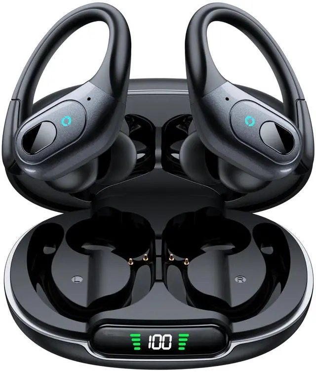 Comfort Fit: Our noise cancelling bluetooth headphones are engineered for ultimate comfort during workout and running, featuring flexible and soft ear hooks that securely stay in place. There are 3 sizes of ear tips (S, M, L) to choose for a customized comfort, ensuring a perfect fit for large and small ears during your exercise routine. The sports earbuds with sweatproof design, making the over-ear wireless earbuds resistant to watersweat splashes and sweat, ideal sport earbuds for fitness, jog. ^^ 4.
