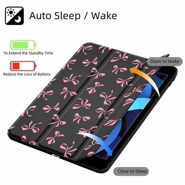 Auto Wake/Sleep: This case features a unique magnetic clasp that automatically wakes your iPad when opened and puts the device to sleep when closed. This helps reduce battery loss and extend the standby time ^^