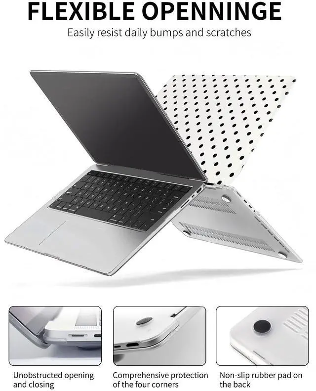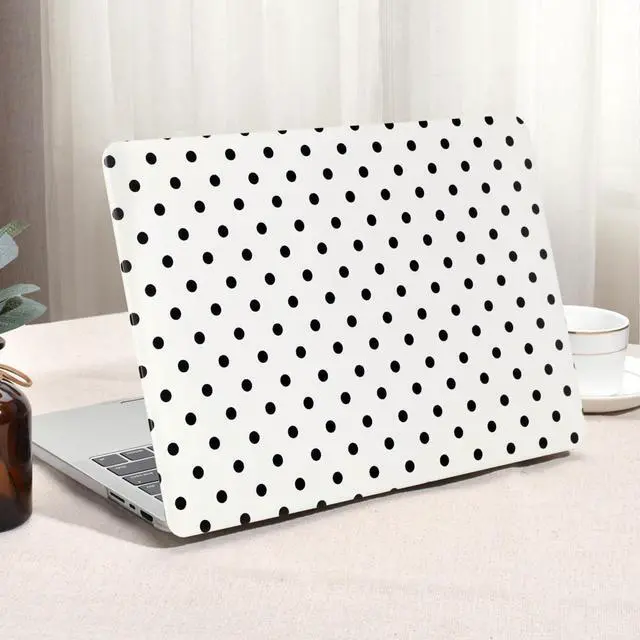 FUNCTION: Exquisite workmanship, polka dots and little love hearts leather plastic case protects your laptop from scratches and scuffs and is easy to put on and take off. The slim design ensures the Macbook's light weight and portability. 360 degrees to prevent dust from entering the keyboard. The bottom of the shell is reticulated hollow design. Good ventilation and heat dissipation effect. Powerful anti-fingerprint function. This case gives you these options to protect your device ^^