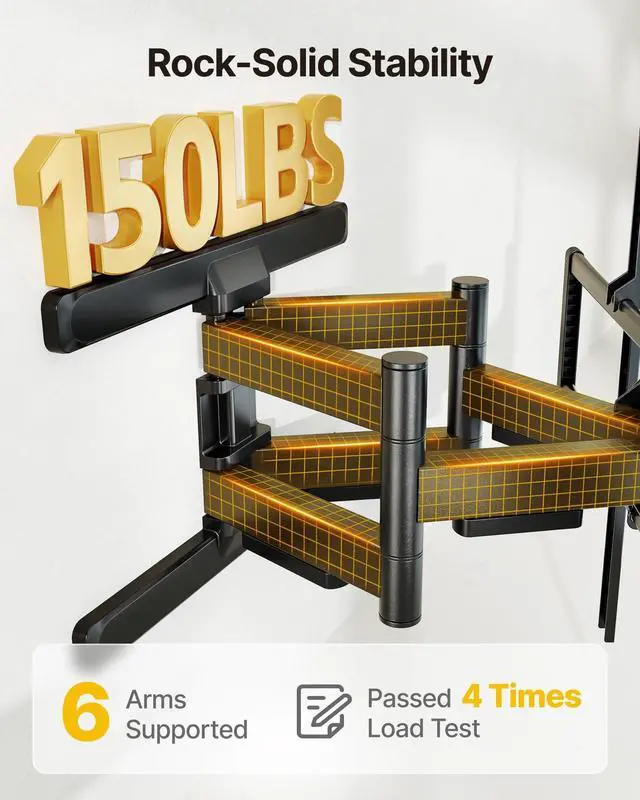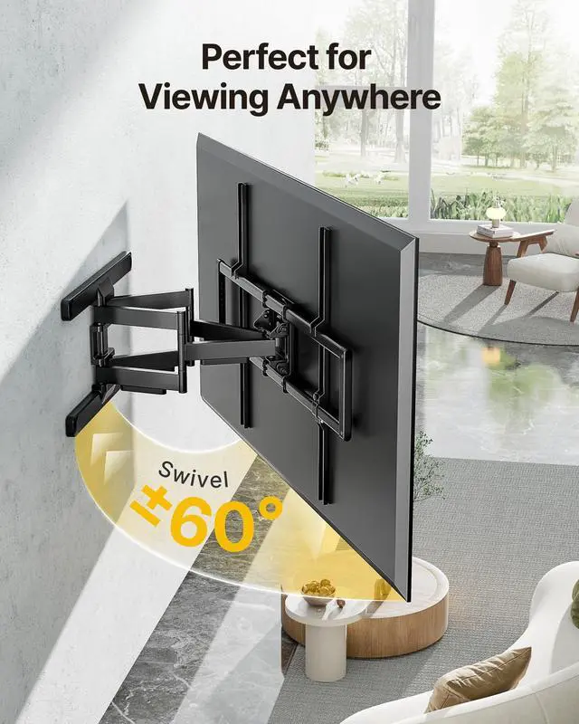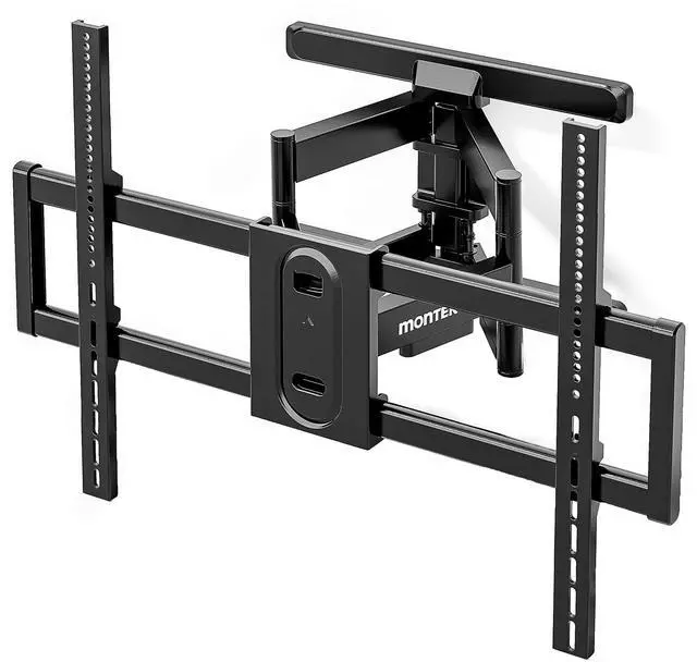 No professional installer needed! Just grab your drill and follow the easy-to-understand, step-by-step installation guide. All parts are clearly labeled for quick identification, and we include everything you need: mounting hardware, a precise mounting template, and a bubble level to ensure perfect wall alignment every time ^^ FULL MOTION FOR THE BEST VIEWWhether you're watching from the sofa, the corner, or across an open room, monTEKs full motion design delivers the perfect view. Smooth 60 swivel (depending on screen size), +5/-10 tilt to cut glare, and up to 18.9" arm extension let you easily adjust your TV to fit your space. Great for family movie nights, immersive gaming, or shared entertainment areas ^^ HEAVY DUTY STRENGTH 4X LOAD TESTEDCrafted from reinforced steel and rigorously 4X load tested, this full motion wall mount handles large TVs with confidence. While officially rated for 150 lbs, its strong enough to confidently support up to 155 lbs without flex or sag. Dual arms and a thickened faceplate eliminate wobble and increase wall contact for rock-solid support, even with 100" screens. Backed by Professional customer service and lifetime technical support, you can install with total peace of mind ^^ KEEP YOUR SPACE TIDY Enjoy a neat and orderly viewing experience with our TV mount. The articulating wall mount tv bracket with dual swing arms can extend 18" for viewing and retracts back to 2.56" for a low-profile look.