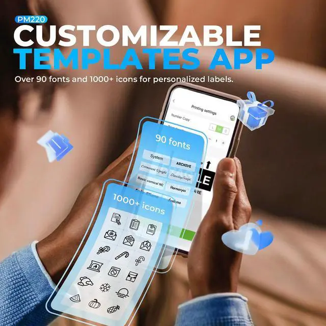 Notice: Please DO NOT connect directly via Bluetooth for all devices ^^ Powerful APP- The PM220 label maker machine with tape comes with label templates and can set up your own templates. This label printer allows you to customize and format labels, supporting various features such as QR codes, barcode labels, tables, materials, time, figures, text, icons. This label maker machine with tape APP included more than 90 +Fonts, 14+ Languages, 450+ Materials. Please do not tear or destruct the green sticker on the back of the label strip, otherwise it will affect the printing effect ^^ High-quality Printing- We recommend using our NELKO thermal label paper for good printing quality. Nelko Label Maker with Direct Thermal Technology. Equipped with high-speed chips, you can enjoy high-definition without relying on ink or toner. Nelko Bluetooth Label Maker Machine with Tape support label width 23-54mm 0.91" - 2.12" ). The Label printer comes with a Label Tape placed in the paper bin. NoticeAdjust the paper slot to secure the label tape properly according to the label size. Press the button on the right side to calibrate the label before printing ^^ Portable- 2 Inch PM220 label maker machine with tape compatible with smartphone & PC.