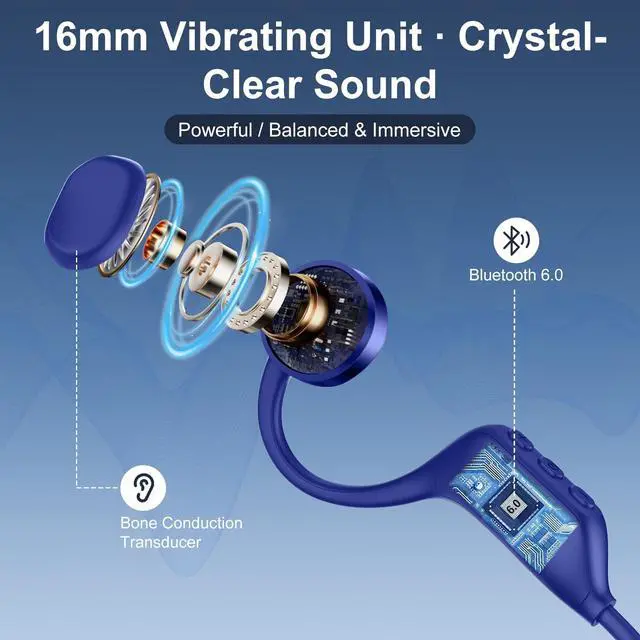 [Open-Ear Bone Conduction]Enjoy safe and comfortable listening with these bone conduction headphones. The open-ear design delivers sound through your cheekbones while keeping your ears open to the environmentideal for running, cycling, or outdoor workouts. ^^ [Clear & Balanced Audio]Experience crisp highs and deep mids with 16mm bone conduction drivers. These bone conduction earphones provide natural, balanced sound without in-ear pressure, allowing long hours of effortless listening. ^^ [Bluetooth 6.0 Connection]Powered by Bluetooth 6.0, X29 conduction headphones ensures instant pairing, a 10m stable range, and smooth, low-latency performance for calls, music, and video streaming.
