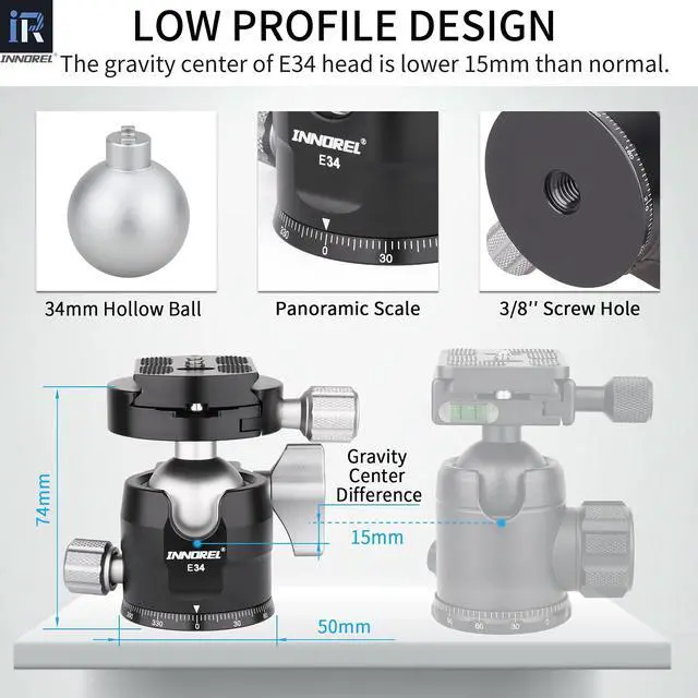 Low Gravity Center: in response to the requirements of customers, the center of gravity of E34 is about 15mm lower than normal, with better stability and good locking force. The diameter of the ball is 34mm and its size is stable. The fast overspeed rate has a safety locking mechanism, which can prevent the camera equipment from falling down accidentally when adjusting the fast forward. 2.