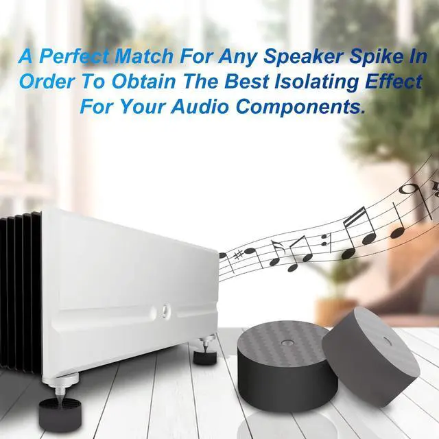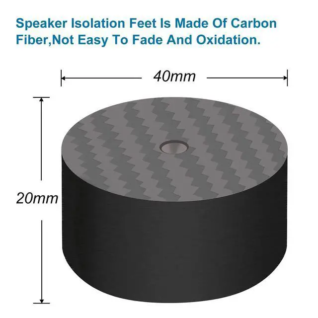 Protect Equipment This is strong, durable and light weight isolation feet for audio. Monosaudio Isolation speaker spike pads are a perfect match for any spike in order to obtain the best isolating effect for your audio components. Also, speaker spike pads can protect your hardwood or laminate floor from spike marks. ^^ High QualityThe Monosaudio speaker spike floor protectors is made of carbon fiber, not easy to fade and oxidation. amp isolation feet surface is smooth without any burr, delicate appearance, and comfortable hand feeling. ^^ Isolation In PlaceUtilize these anti-vibration isolation feet for speakers to get a clearer sound for your hifi equipments or reduce external noise disturbance on your speakers.