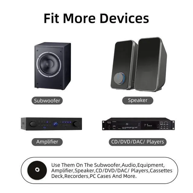 ^^ High Quality SoundMonosaudio speaker spikes pad can be installed to separate your turntable deck, cd player, amplifier or other audio components from vibration. Therefore, the tones will be more focused and tighter. And, there will be much less noise to be transferred to other rooms from the floor. ^^ Wide ApplicationSubwoofer feet, audio equipment feet, amplifier feet, speaker feet, turntable isolation feet pads, CD/DAC/DVD players, amplifier feet, isolating speakers, subwoofer isolation feet, pc case feet, audio isolation feet and Other Audio Equipment.