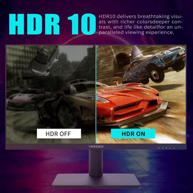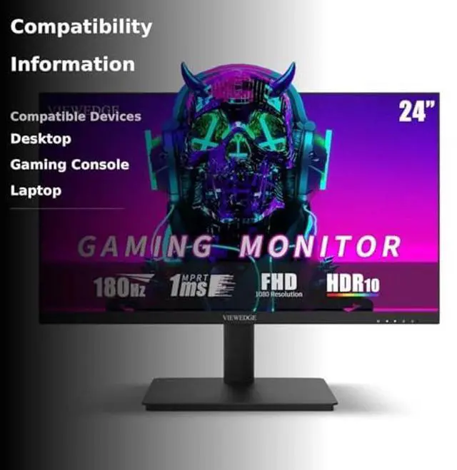 24" FHD 180Hz Gaming MonitorViewedge 24 inch 1080p 180 Hz professional monitor utilizes an VA panel with contrast ratio of Millions: 1, 178-degree viewing angle, HDR 10, and 1 ms responsive time. The gaming monitor provides the ultimate gaming experience