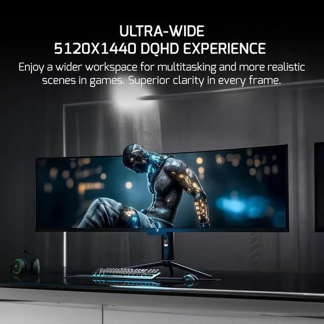^^ DQHD Resolution: Dive into ultra-wide visuals with 3840x1080 resolution, offering detailed graphics and extra screen space for multitasking or fully engaging in your favorite games.