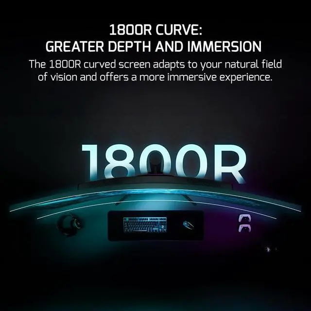 UltraWide Curve: Experience immersive gaming with a massive 49" curved screen and 32:9 aspect ratio. The 1800R curvature ensures a consistent viewing distance for your eyes, enhancing focus and immersion.