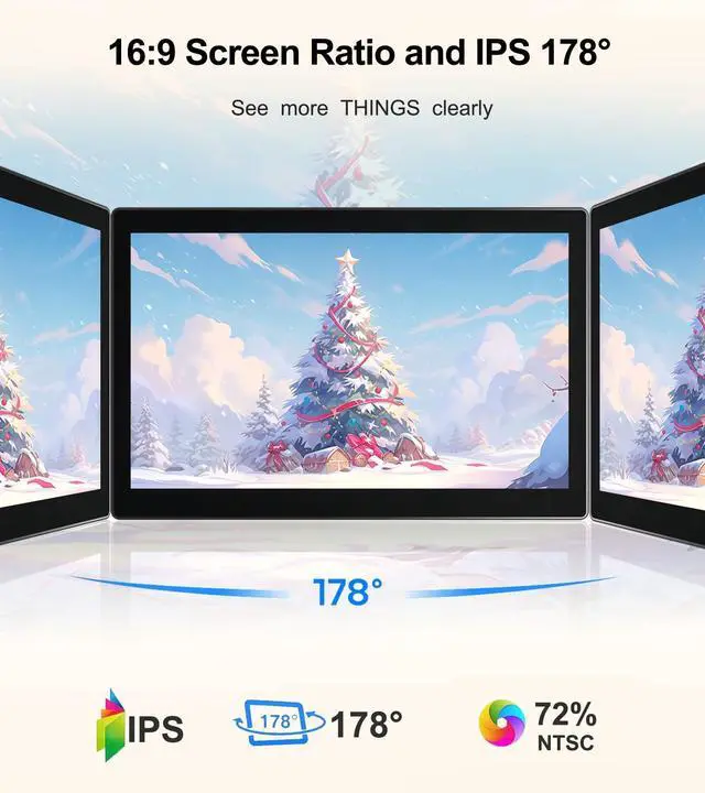 Protection Design: This 1920*1080 HD resolution IPS LCD screen not only delivers outstanding color performance and 178 wide viewing angles, but also features a special blue light filtering coating that effectively reduces blue light radiation and flicker, thereby protecting the eyes and making it suitable for long-term use. Additionally, it is equipped with a high-quality audio system that provides clear and rich sound experience without the need for external speakers ^^