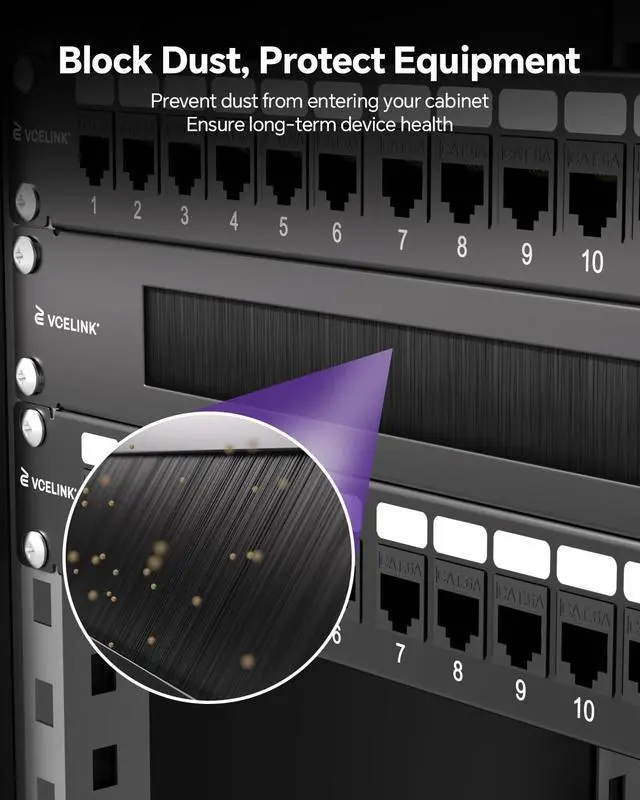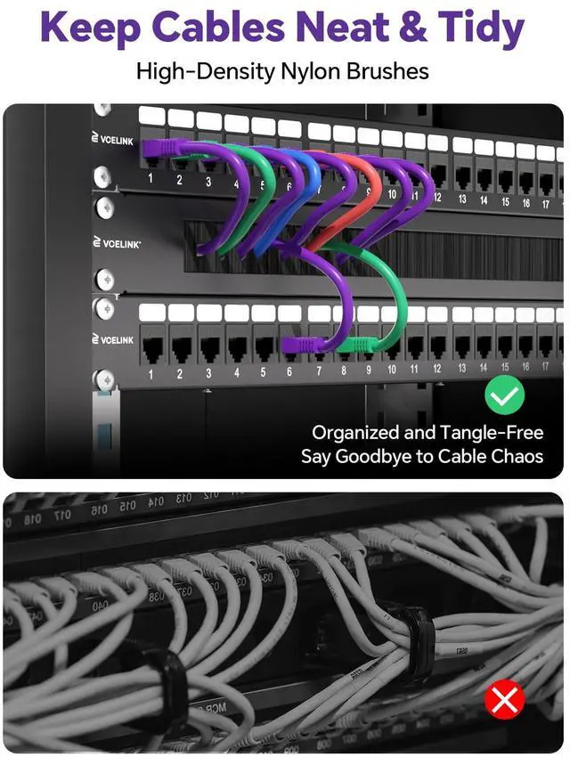 DURABLE MATERIALS: This brush cable manager is made of S45C steel and high-quality nylon brushes, enhancing the panel's durability and extending its usage frequency. It is suitable for professional data centers, ordinary households and so on