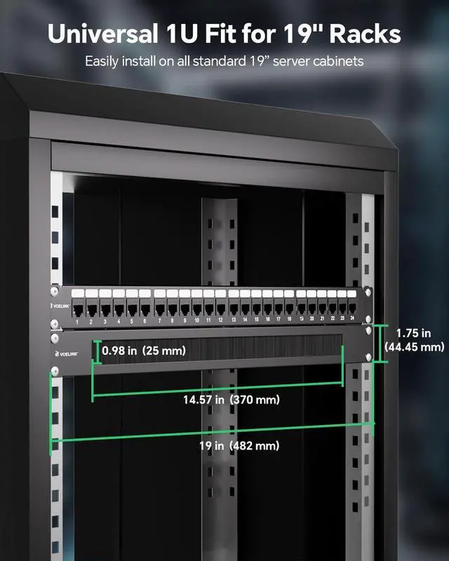 UNIVERSAL COMPATIBILITY: The network rack cable management is compatible with standard 19-inch server racks, enclosures, and cabinets. Easily mounted with just four mounting screws and cage nuts, it is suitable for a wide range of scenarios