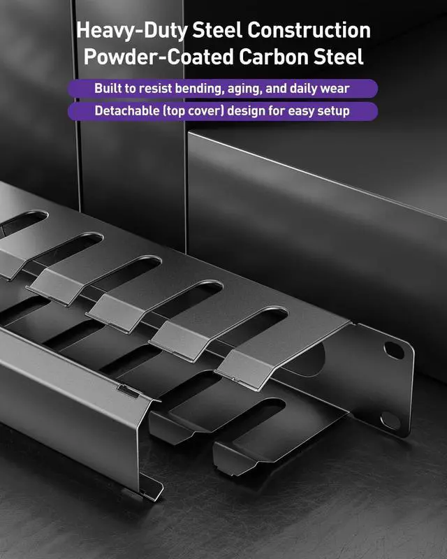 HEAVY-DUTY CONSTRUCTION: Constructed from carbon steel throughout with a powder-coated finish. This design resists bending, corrosion, and wear for reliable performance in high-demand network environments, outperforming plastic organizers that warp or crack under hea