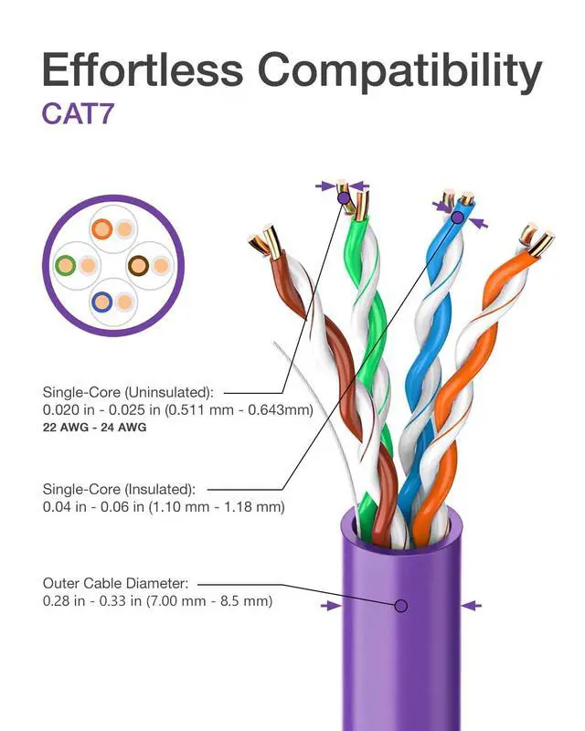 UlTRA-FAST PERFORMANCE: The CAT7 connector supports 10 Gbps data transmission at 600 MHz bandwidth for professional cabling work. Fits 22-24 AWG Ethernet cables (max OD 8.5 mm). Compatible with CAT7 and RJ45 devices like PCs, laptops, switches and routers
