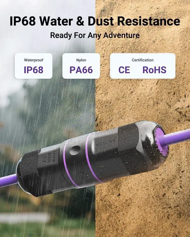IP68 WATERPROOF & DUSTPROOF: This ethernet coupler is IP68 certified. Its durable PA66 housing, sealed rubber ring, and waterproof gasket deliver professional-grade protection, effectively shielding against external rain, dust, and more, making it the perfect solution for safeguarding RJ45 ports. ^^