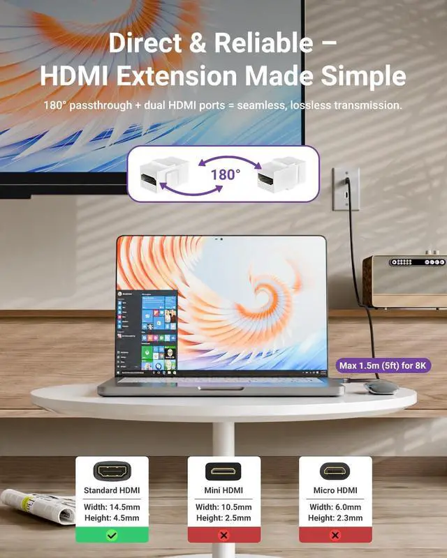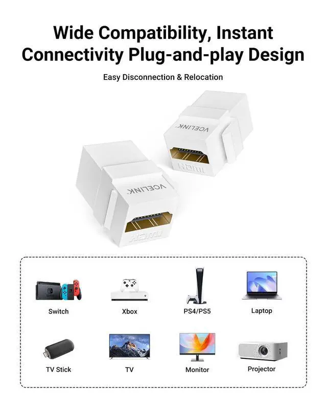 UNIVERSAL COMPATIBILITY & PLUG-AND-PLAY: Works flawlessly with TVs, projectors, gaming consoles, laptops, Blu-ray and streaming players. Easy keystone design enables quick disconnection and relocation. Backward compatible with HDMI 2.0 / 1.4 for seamless use.