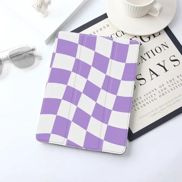 Idocolors Pad Case Abstract Lattice White Case for iPad 10.9" Air 4 2020/Air 5 Cute Art Grid Girly Anti-Scratch Shockproof with Pencil Holder Smart Trifold Stand