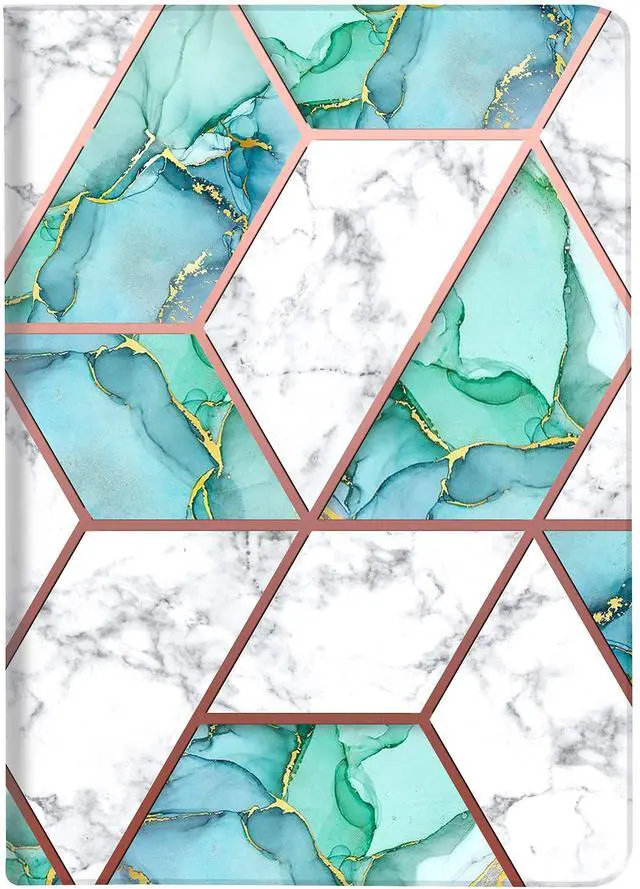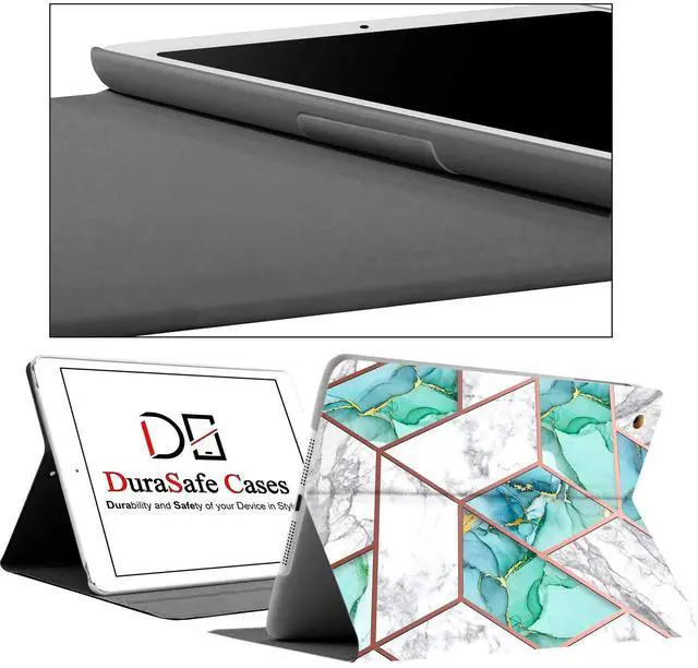 DuraSafe Cases for iPad 9.7 5th 6th Gen Air 1st 2nd Gen [iPad 5 6 Air 1 2] A1893 A1822 A1566 MH2V2LL/A MRM52LL/A Smart Profile Adjustable Viewing Angle Stand Printed Flip Cover - Marble Green