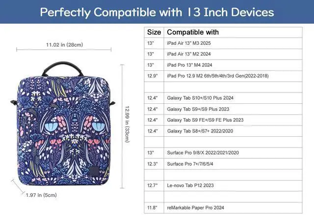 For up to 13 inch Tablets: Dadanism 13 inch tablet sleeve carrying case is compatible with iPad Pro 13" M4 2024, iPad Air 13" M3 M2 2025 2024, iPad Pro 12.9 M2 6th 5th 4th 3rd Gen(2022-2018); Surface Pro 9 8 X 13", Surface Pro 7+ 7 6 5 4 12.3"; Samsung Galaxy Tab S10+ Plus S9 FE+ S9+ Plus S8+ S7 FE S7+ 12.4"; reMarkable Paper Pro 11.8".