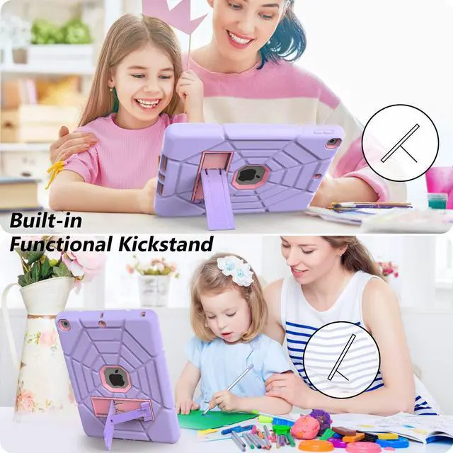 Grifobes for iPad 6th/5th Generation Cases 2018/2017, for iPad Air 2 Case 2014 9.7 inch, Heavy Duty Shockproof Rugged Protective i Pad 5 6 Gen 9.7" Case with Stand for Boys Girls (Purple)