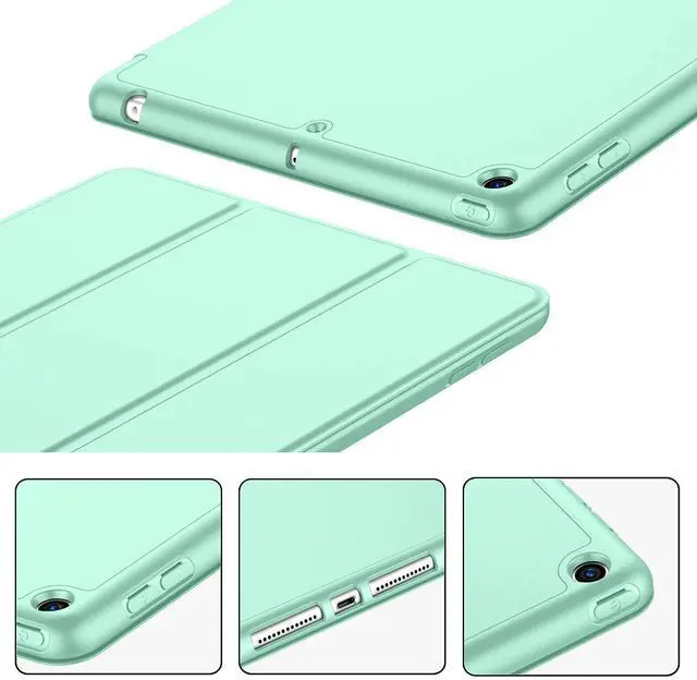 iMieet iPad 9th Generation Case 2021/iPad 8th Generation Case 2020 10.2 Inch with Pencil Holder, iPad 7th Gen 2019 Case with Soft Baby Skin Silicone Back, Auto Wake/Sleep Cover(Light Green)
