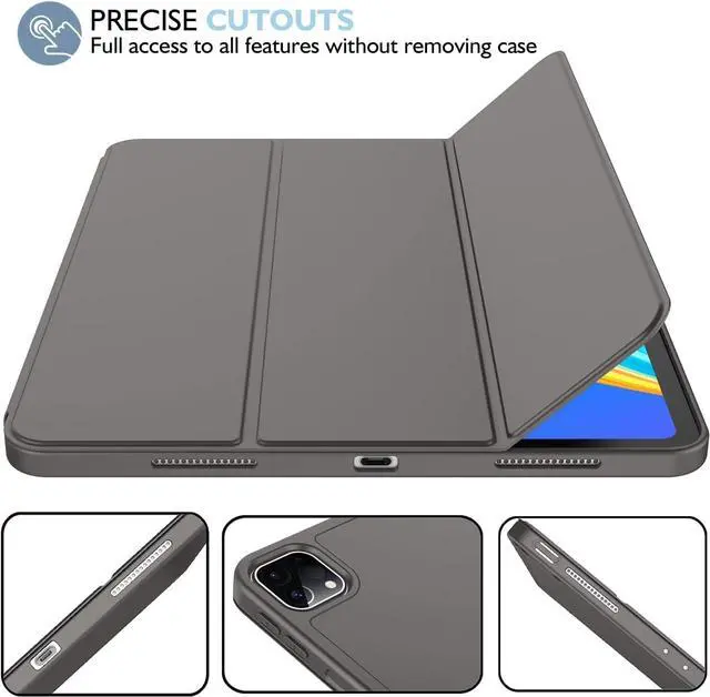 iMieet for iPad Pro 11 Inch Case M4 (2024 5th Generation) with Pencil Holder, [Support Pencil Pro and Pencil (USB-C)], Trifold Stand Smart Case with Soft TPU Back, Auto Wake/Sleep (Space Gray)