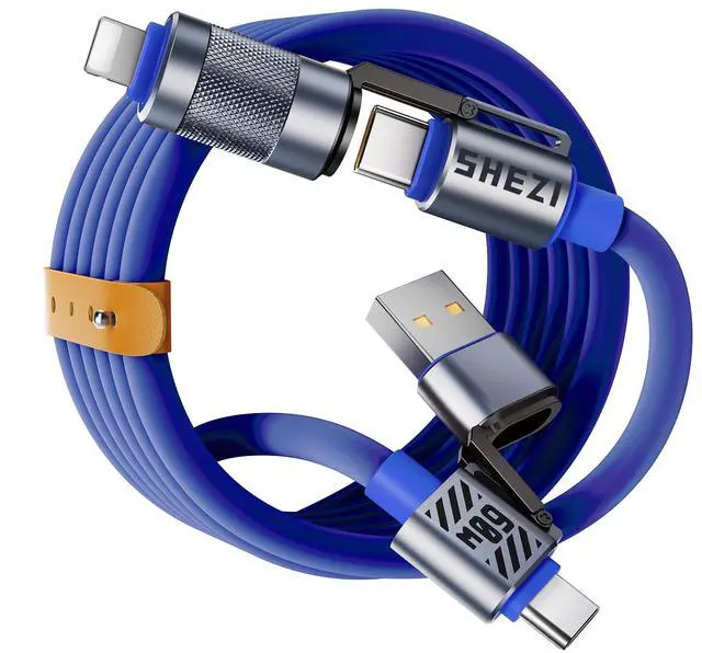 Vexipia 4 in 1 USB C Cable Lightning Cable,60W Fast Charging & Data Transfer,iPhone iPad Charger Cord with Lightning/Type C/USB A for iPhone 16/15/Macbook,IPad,5FT Blue [SHEZI Series]