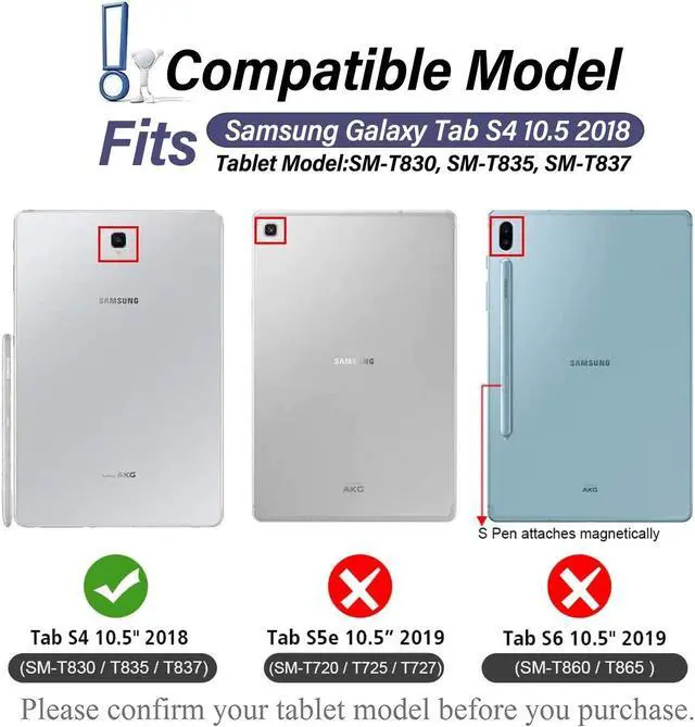 [(Compatibility Model)] Exclusively designed for Samsung Galaxy Tab S4 10.5 inch Model SM-T830/T835/T837 2018 Release Tablet. It will NOT work for any other model device. Please kindly check before purchase.