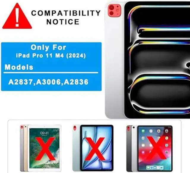 Keyboard Case Compatibility - Please note: This case with keyboard is specially designed for 2024 iPad Pro 11.0 inch M4. It is Not compatible with ipad pro 12.9 or other device models. Before you order, please check the back of your iPad to confirm the model number. Note: The Tablet and Pencil are NOT included