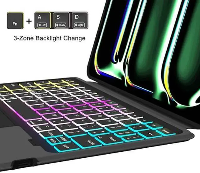 Backlit Keyboard For 2024 iPad Pro 11.0 inch M4 - iPad Pro 11.0 inch 2024 M4 tablet case with keyboard provides 3 Zone 7 color backlit options & 3 brightness modes, It has 3 brightness modes adjustments