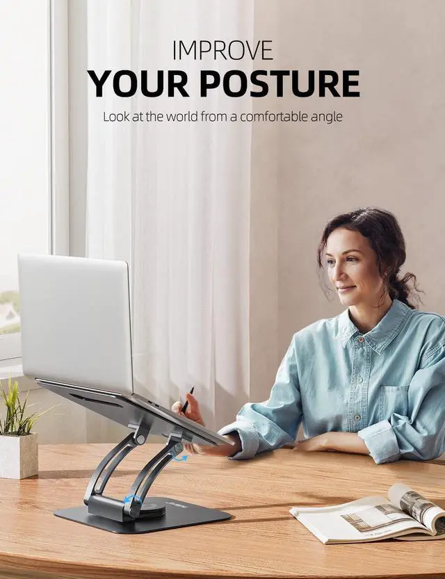^^ Improving Posture: Features the 6000 times rotation tested dual hinges, you can adjust the height and angle of the laptop riser to set the most comfortable position while using your laptop. Because of its ergonomic design, the laptop stand adjustable helps reduce your chance of developing back and neck problems. Less stress, more focus.