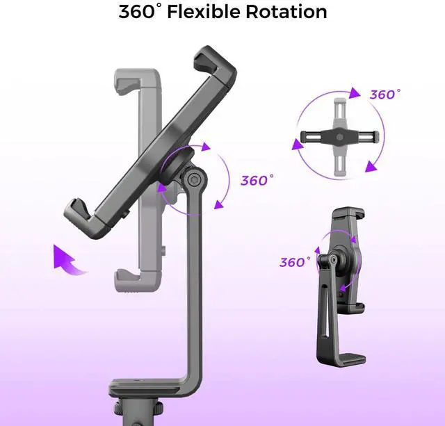 ^^ 360Flexible Rotation: This iPad mount for tripods features a versatile head that allows you to easily rotate and adjust the tablet between portrait and landscape orientations, as well as forward and backward angles, ensuring it meets all your positioning needs. ^^ Universal 1/4"