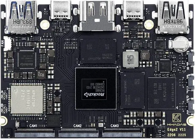 Edge2 is equipped with a high-performance SOC - RK3588S, 8nm lithography process, 8-core 64-bit, 2.25GHz Quad core ARM Cortex-A73 and 1.8GHz Quad core Cortex-A55 CPU Integrated with ARM Mali-G610 MP4 quad-core GPU up to 1GHzBuild-in 6 TOPS Performance NPU