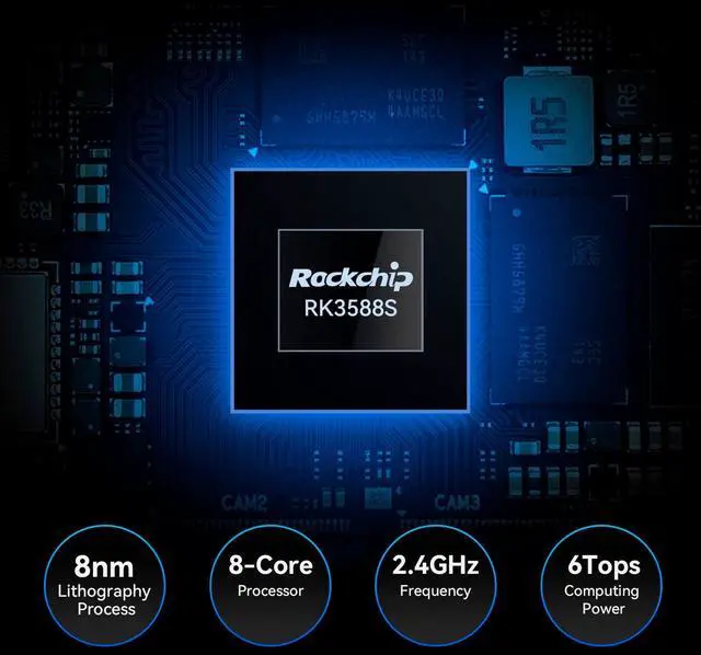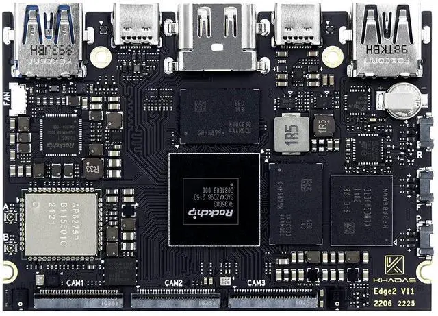 Edge2 is equipped with a high-performance SOC - RK3588S, 8nm lithography process, 8-core 64-bit, 2.25GH z Quad core ARM Cortex-A73 and 1.8GH z Quad core Cortex-A55 CPU Integrated with ARM Mali-G610 MP4 quad-core GPU up to 1GHzBuild-in 6 TOPS Performance NPU ^^ Edge2 uses the AP6275P Wi-Fi 6 PCIe module supports IEEE 802.11 ax/ac/a/b/g/n and 2T2R. This advanced wireless transceiver module makes data transmission stable and fast ^^ Quad