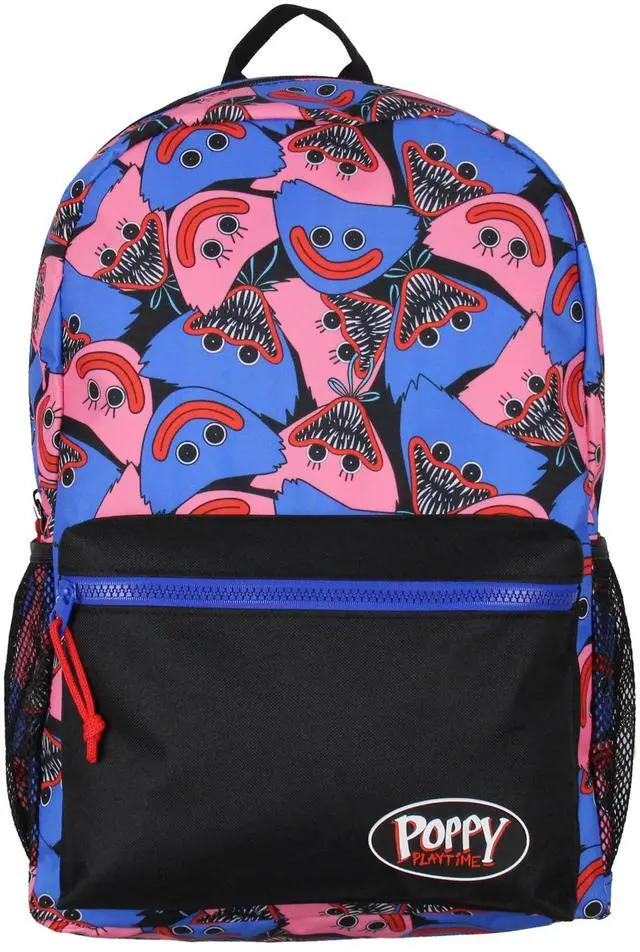 POPPY PLAYTIME MERCHANDISE - Designed for fans of the popular video game, this backpack is a must-have for anyone looking to show their love for the game while keeping their essentials organized and protected ^^ ALLOVER CHARACTER PATTERN - This bag's striking design features an allover Huggy and Kissy Missy pattern. The vibrant colors and design capture the essence of the game, making it a vivid eye-catcher ^^ OUTER FEATURES - The backpack has 1 outer zipper closure pocket that is great for utensils like pens, pencils calculators and more. Easy-carry top handle and adjustable padded shoulder straps ^^ MAIN COMPARTMENT - The main compartment features a padded laptop pocket and a padded back great for storing valuable electronics like tablets, phones, and personal laptop computers.