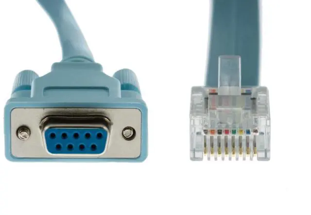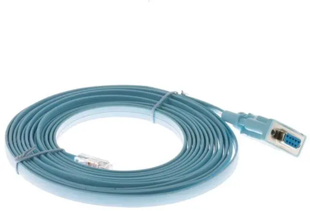 Simplify your network configuration with the CablesAndKits Cisco DB9 to RJ45 Console Cable. This 15-foot light blue rollover cable provides a reliable RS232 to Ethernet connection between your computers DB9 serial port and Cisco networking devices using RJ45 console ports. Designed with a rolled-over pinout, this RJ45 to DB9 cable reverses wiring for accurate device communication connecting pin 1 to pin 8, pin 2 to pin 7, and so on. Ideal for network technicians, this Cisco console cable replaces bulky multi-adapter kits, offering a single, durable cable solution. The flexible PVC jacket ensures easy cable management and long-term reliability in server rooms or field environments.