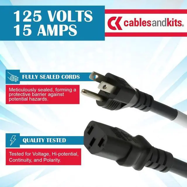 HIGH VOLTAGE POWER CORD: This 14 AWG heavy duty power cable features a 15 Amp rating, ensuring reliable power delivery for your devices. The stylish black color and durable design provide long-term performance.