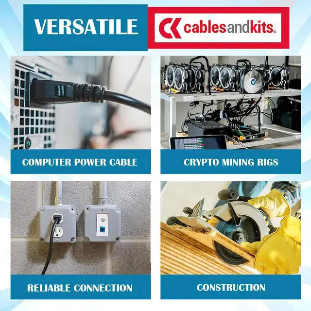 SECURE POWER CONNECTION: This 15ft heavy duty AC power cord, 14 AWG with a 3-prong connector, is perfect for powering PCs and devices, offering reliable performance, safety, and durability for high-current applications.