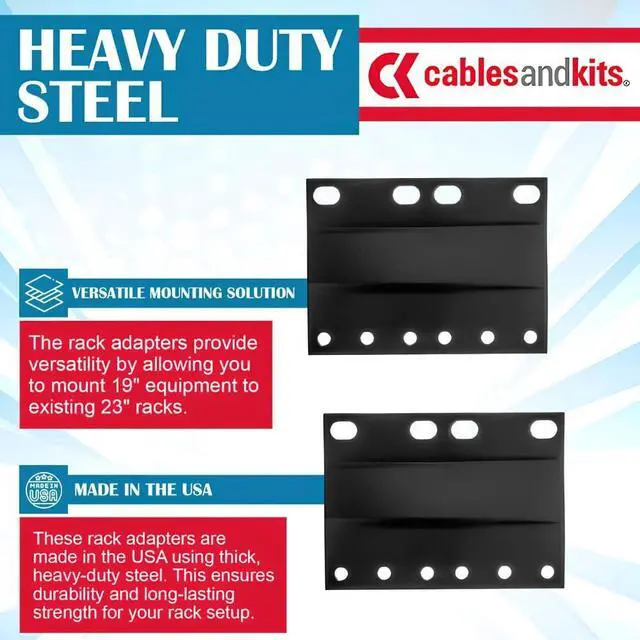 CablesAndKits - 2RU Rack Adapter (2U), Included Rack Screws - Durable 12 AWG Steel Construction and Converts 23" Rack to 19" Spacing, Rack Mount Adapter for Computers, Servers or Network Equipment