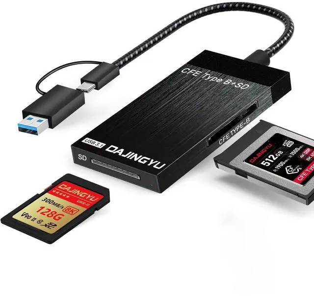 DAJINGYU 3-in-1 CFexpress Type b/SD Card Reader USB C, Dual-Slot USB 3.2(10Gbps) Adapter Compatible with Android/Windows/Mac OS/Linux