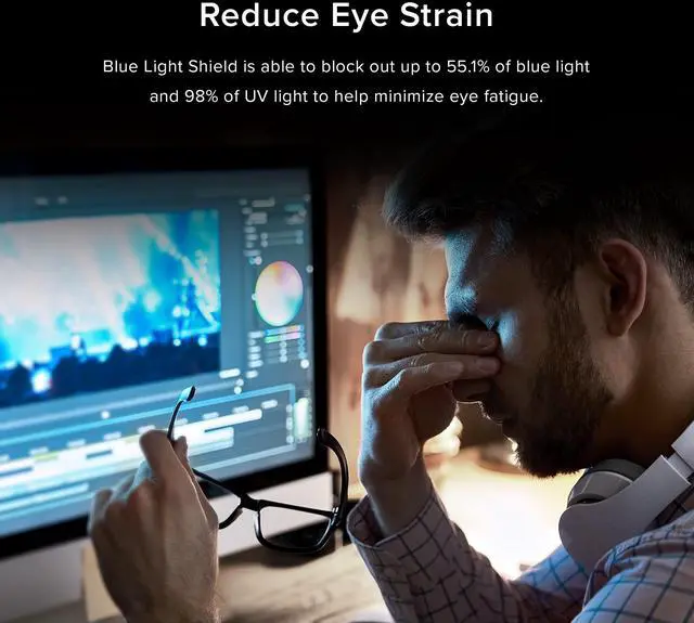 Reduce Eye Strain: Effectively reduce digital eye strain, CVS, chronic injuries to the eyes, relieve eye fatigue, soreness by filtering out the blue light. Blue Light Shield helps to protect your eyes by blocking the harmful blue light between 420~460nm.
