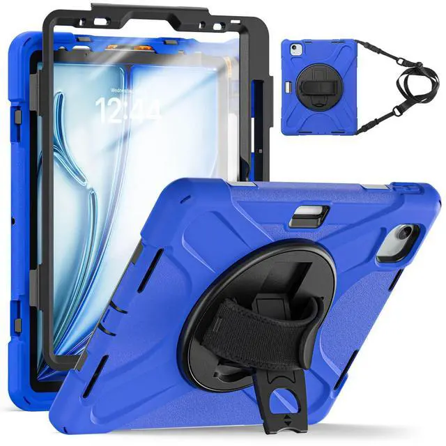 TSQQST Case for iPad Air 7th/6th Generation 11 Inch M3 M2 2025 2024/ iPad Air 5th/4th Gen 10.9 Inch, Heavy Duty Protective with Pencil Holder, Screen Protector, Stand, Strap, Blue