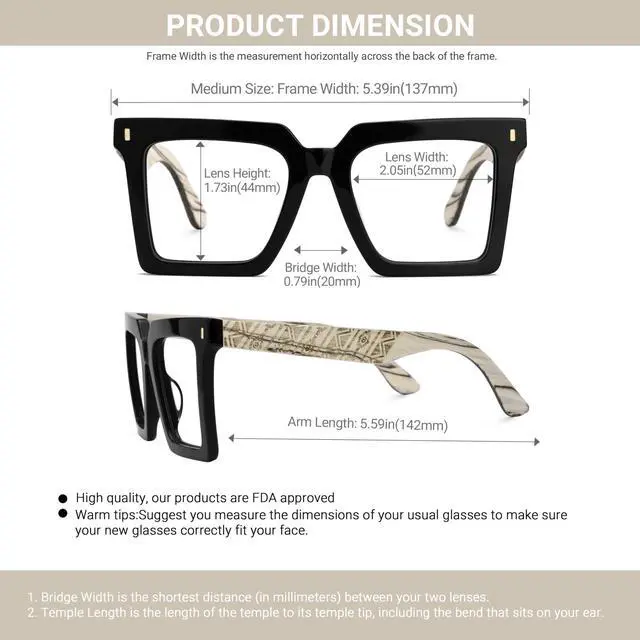 Classic black square frames and unique arms design, with the amount of chic everyday collocation just right, unique yet personality, suit for office, relaxing, and any occasion