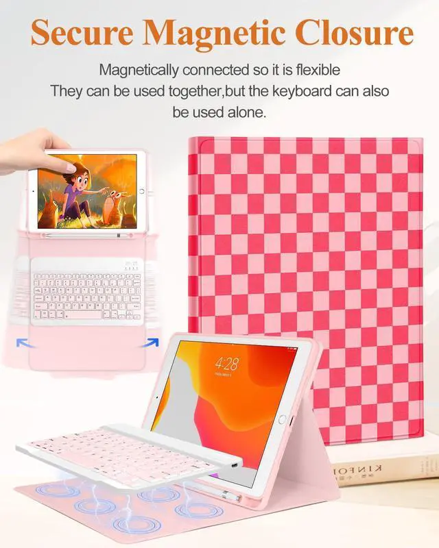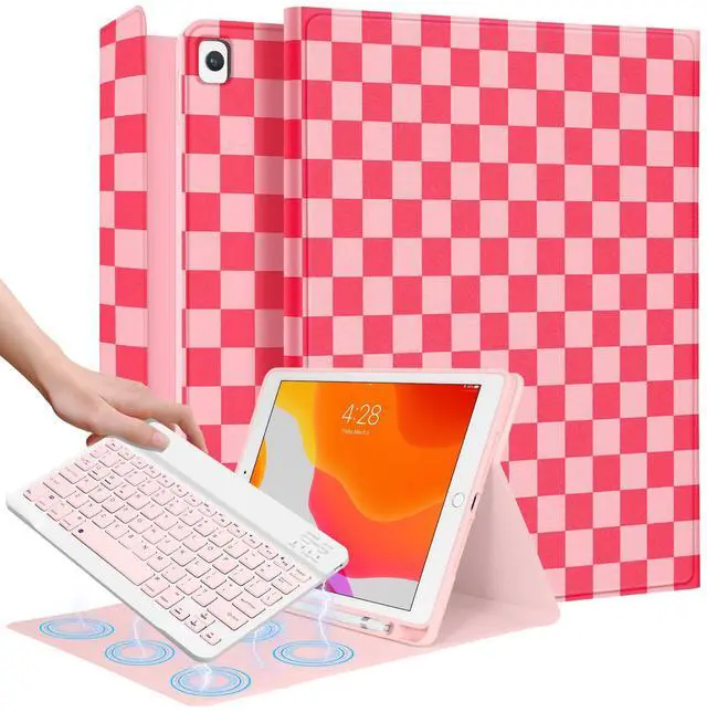Wazzasoft for iPad 9th/8th/7th/Air 3rd Generation/Pro 10.5 Inch Case Keyboard Pencil Holder Folio Tablet Cover Women Girl Cute Girly Teen Checkered Plaid Unique Design for Apple 10.2 & 10.5 Inch