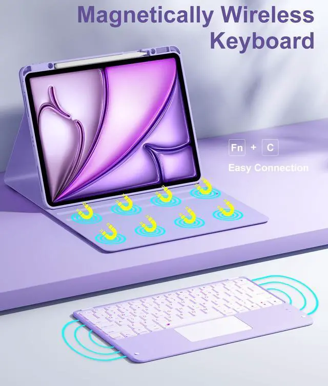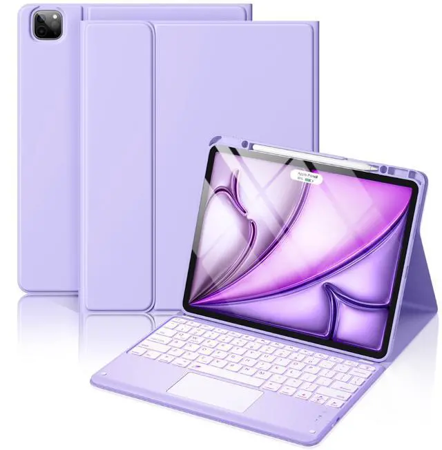 Hamile for iPad Air 13-inch Case Keyboard (M3/M2) - Magnetic Wireless Keyboard with Multi-Touch Trackpad 7 Colors Backlit Stain Proof Folio Cover for iPad Pro 12.9 6th 5th 4th 3rd Generation - Purple