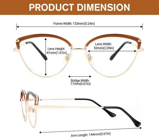 • Classic cat eye glasses frames, perfect for women of all ages, exuding timeless elegance.