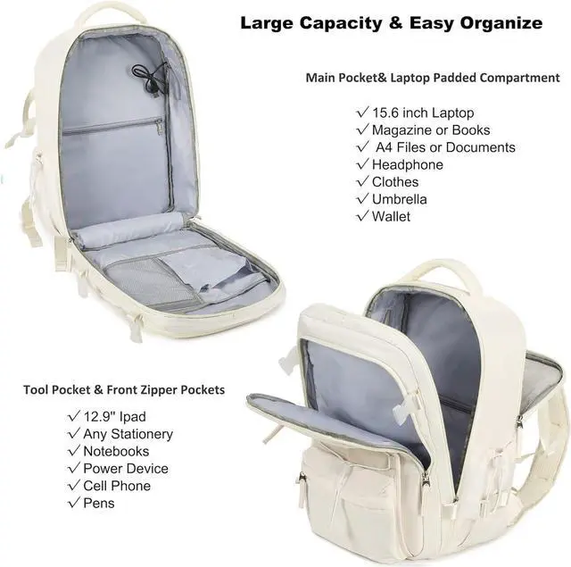 [(Separate Laptop Compartment Design & Practical Pockets )] : One separated laptop padded compartment holds 15.6 Inch laptops as well as 16 Inch,15 Inch 14 Inch and 13 Inch. The middle compartment is roomy for daily necessities, clothing, iPad, tech electronics accessories, A4 magazines,etc. The three front compartments make your