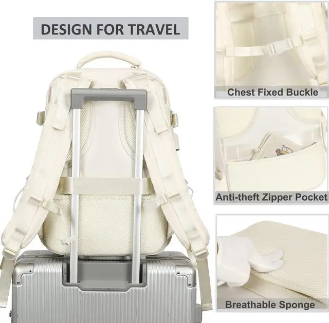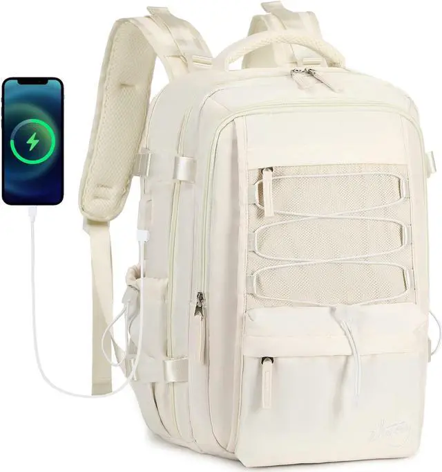 Travel Backpack for Women Men 17 Inch Laptop Backpacks with USB Port Carry on Bag Airline Approved Large College School Bookbags Waterproof Work Business Sport Rucksack Casual Daypack (White)